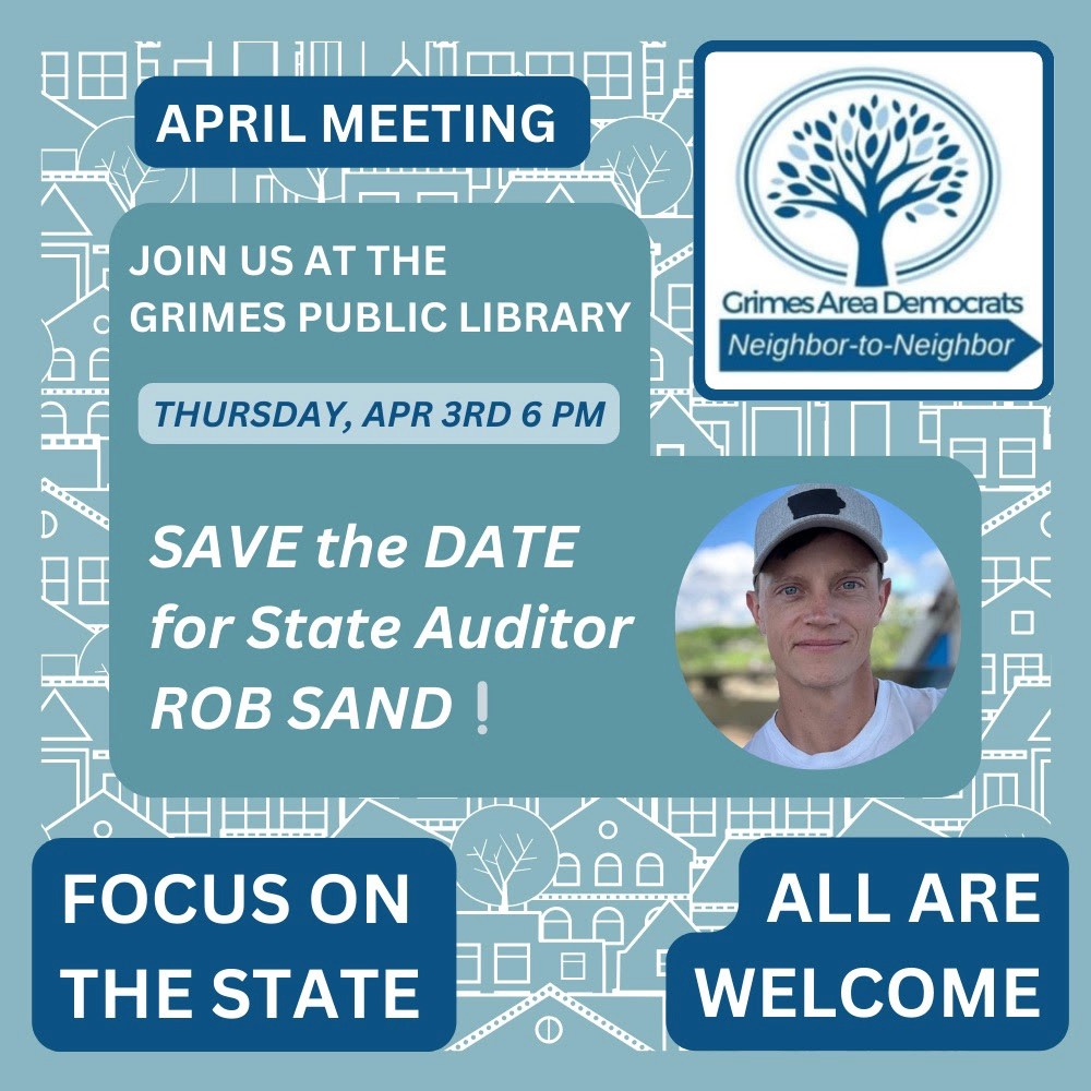Join the Grimes Area Democrats on April 3 at 6 PM.